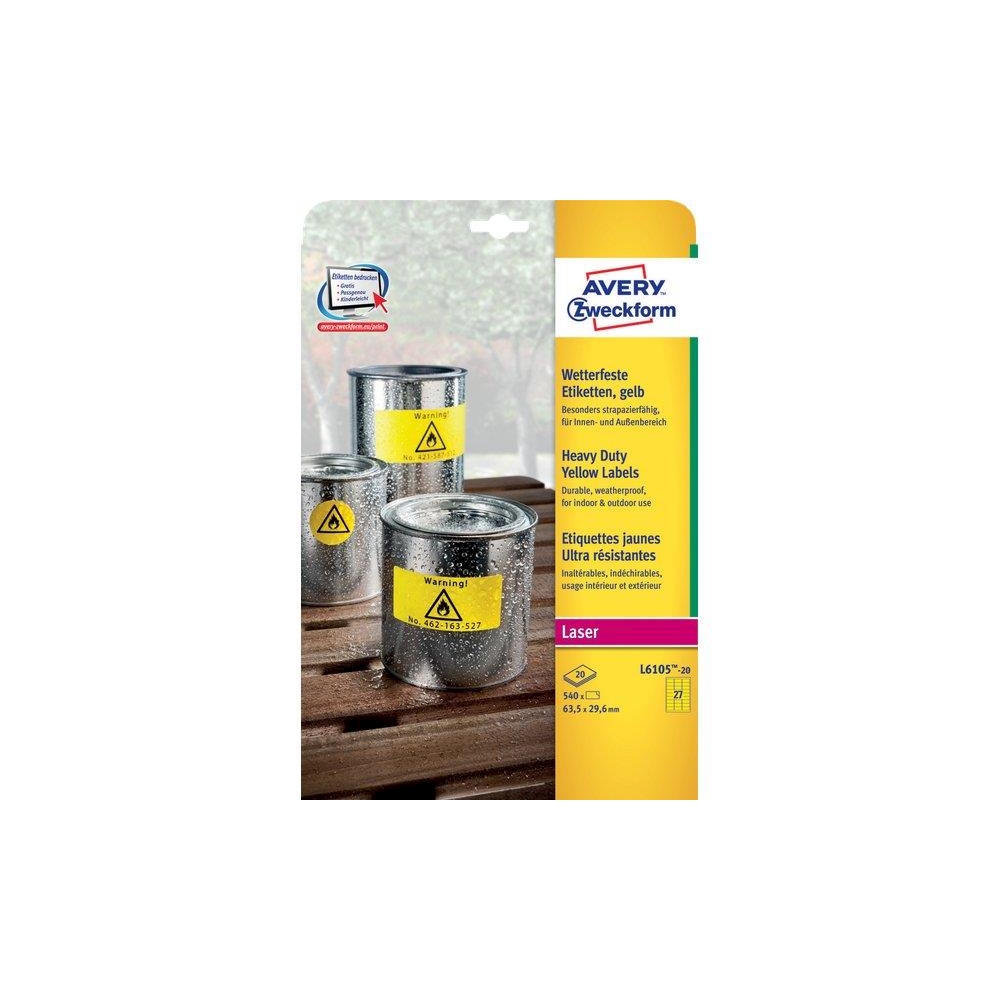 Ideali per uso esterno non si strappano, sono impermeabili e resistenti alle intemperie, alle sostanze oleose, alla sporcizia, al grasso ed ai raggi ultravioletti.Resistono a temperature estreme da -20°C a +80°C. Possono essere applicate su metallo,vetro, plastica, legno. Le etichette in poliestere giallo possono essere utilizzate per identificare componenti elettronici, evidenziare pericoli, particolarmente indicate per segnalazioni e avvertenze.